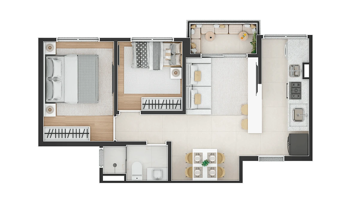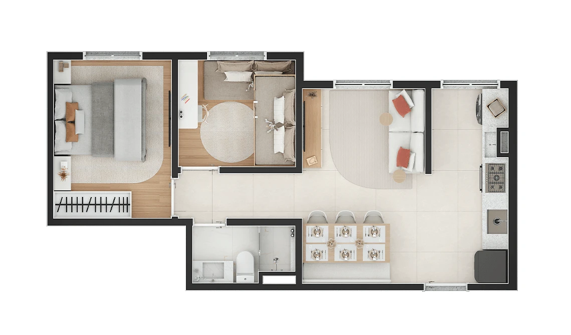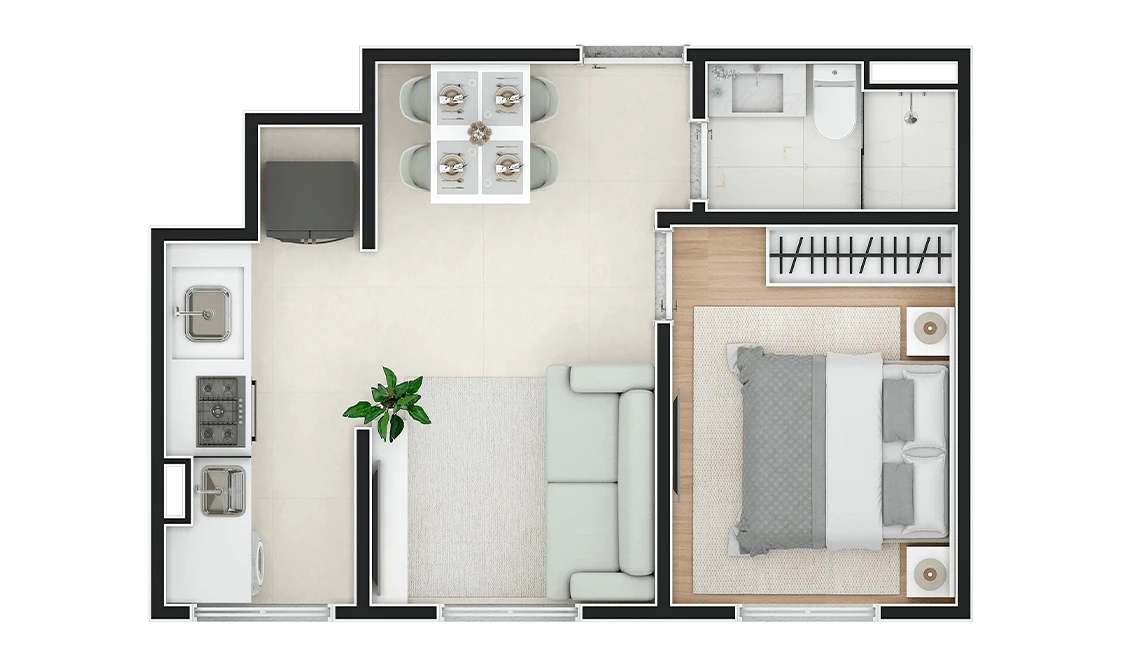 Arte Campo Limpo - Apartamentos de 1 ou 2 dormitórios: Escolha o tamanho ideal para você, com opções com e sem vaga de garagem. Planta inteligente: Aproveite ao máximo cada metro quadrado com opções de 31m² a 44m² !